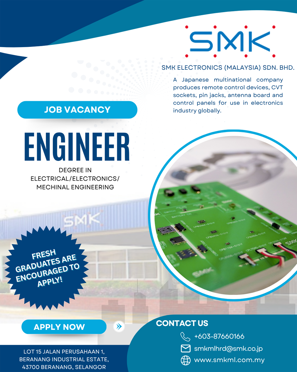 SMK Electronics (M) Sdn. Bhd. adalah salah sebuah syarikat pembuatan elektronik. Kami adalah salah satu pengeluar terbesar alat peranti kawalan jauh, Jack dan antena Papan penyambung dan Panel Kawalan dalam Malaysia.